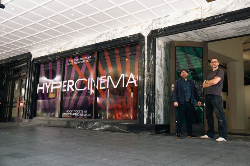 Once upon a time, 131 Queen Street was Milne and Choyce Ltd, the first department store in Auckland. Today, its marble façade welcomes people into another first – the Hypercinema pop-up. It’s the world’s first live AI experience, where the audience becomes the subject of the stories and images on screen. Hypercinema is running until the end of October.