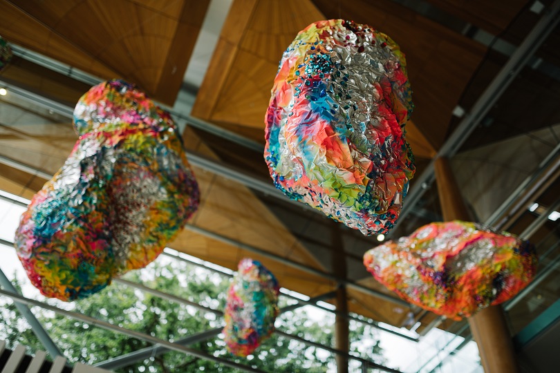 But that wasn’t my absolute favourite moment in recent times in the Auckland Art Gallery Toi o Tāmaki. Nor was the experience of coming face to buttocks with Rodin’s The Kiss, in my own city, although that was amazing too. Nor of spying those wonderful brightly coloured blobby things, which the artist Judy Darragh calls Limbo, hanging in the main atrium, which you can see day and night from every vantage point in the street and the park behind, because of the architectural excellence of the building itself. Rocks floating in space, a siren call of the imagination.